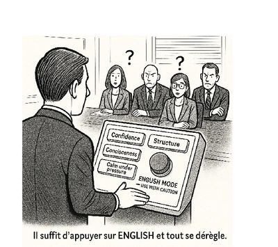 Un PDG brillant à Paris ou à Francfort peut sembler hésitant en anglais — ton plus doux, humour atténué, gestes plus retenus. Le message s’affaiblit, le signal se brouille.